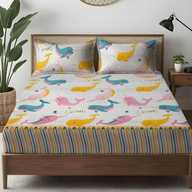 Weave & Décor Microfiber Double Flat 300 TC Cartoon Bedsheet (Pack of 1, Blue)