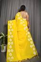 Printed, Self Design, Floral Print Handloom Pure Cotton Saree (Yellow)