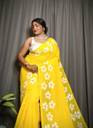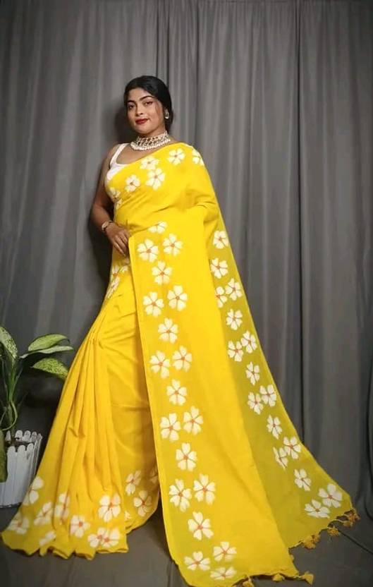 SRIJA BOUTIQUE Printed, Self Design, Floral Print Handloom Pure Cotton Saree (Yellow)