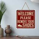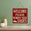WEBELKART " Please Remove Your Shoes" Wood Wall hanging For Home , Office, Shop And Clinic (9.5 inch X 9.5 inch, Multicolor)