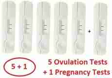 It has 5 ovulation checking kits and 1 pregnancy test kit for the...