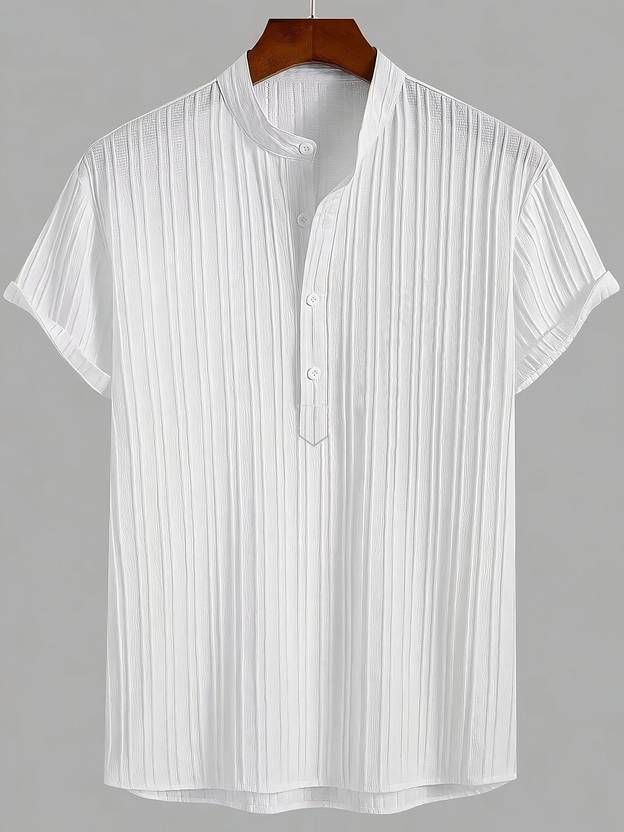 Stay cool and stylish in this Cloth Factory short kurta made from a breathable cotton blend. Designed with a band collar, half placket, and textured vertical stripes, it's perfect for both casual and semi-formal wear.