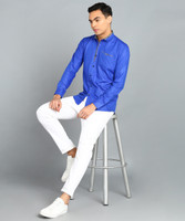 Look fashionable when you step out with friends in this stylish shirt. Match it with a pair of narrow-fit jeans, vibrant slides, and D-shaped sunglasses.