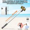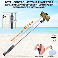 The selfie stick extends up to 67 cm, offering greater flexibility for framing shots, capturing better group selfies, and achieving improved angles for photography.