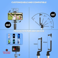 Equipped with a 360-degree rotating mobile holder, this selfie stick enables multi-angle shooting for versatile and creative photo and video capture.