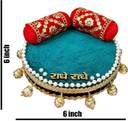 Elegant Design: Beautifully crafted Thakur Ji bed in rama green color, perfect for adding a touch of elegance and devotion to your home temple., Spacious and Comfortable: Designed in a small size to comfortably accommodate your Krishna Ji or Laddu Gopal Ji idol, providing ample space for resting and decoration., Premium Quality Materials: Made from high-quality wood, ensuring durability and a luxurious feel. The bed is built to last, offering a sturdy and reliable resting place for your deity. Size : L6x W 6x H 4 inches, Super Soft Cushioning: Features super soft cushioning to provide maximum comfort for your Kanha Ji idol, enhancing the overall aesthetic and spiritual experience. Package contains:1 Bed + 2 Cushions