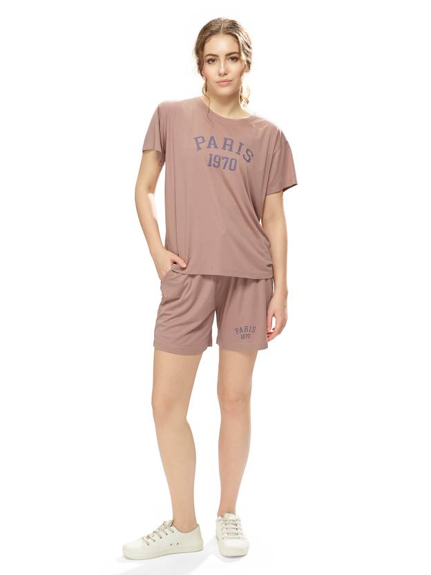 Women Top & Shorts Set Brown Printed