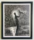 WeGoArtGallery Father and Daughter Needle Texture Painting Poster Acrylic 12.5 inch x 10 inch Painting (With Frame)