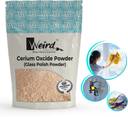 Weird's fine grade cerium oxide comes in powder form in the popular grit of 1.3 -1.6 micron particle size. This mineral powder is used for marks, blemishes and bright polishing of metals and glass surfaces, and in lapidary work for polishing stones. Cerium Oxide Polishing Compound use for polishing and removal of fine scratches and scuff marks in glass and mirror. Use Cerium Oxide with Felt Polishing Wheel to remove scratches and scuff marks in glass and mirror. Mix with water into a paste to create fast acting scratch remover. HOW TO APPLY CERIUM OXIDE ON CAR WINDSHIELD ? Mix the cerium oxide into a paste using water and either apply by hand using a cloth or sponge and plenty of elbow grease, or for best results use in a rotary tool or electric polisher on a felt bob or wheel on a slow speed. Keep applying the paste to the felt bob or felt wheel as it dries out.