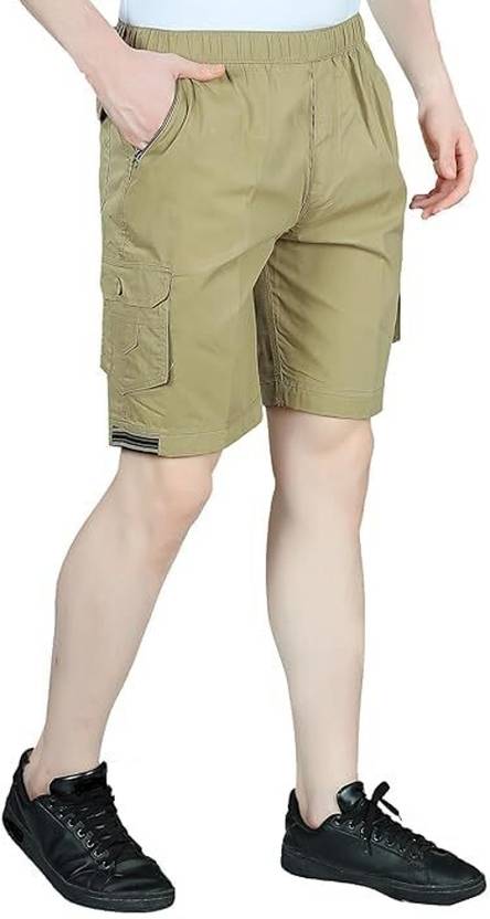 Welcy Solid Men Khaki Cargo Shorts