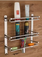 This multipurpose bathroom and kitchen wall shelf is made of good quality stainless steel and helps in storing your bathroom and kitchen essentials. It is designed with three compartments that help you store your brushes, soaps, towels, utensils, and much more in a more intact and clean way. Its premium glossy finish creates a simple but elegant look that reflects contemporary style and conveniently stores your stuff with ease.