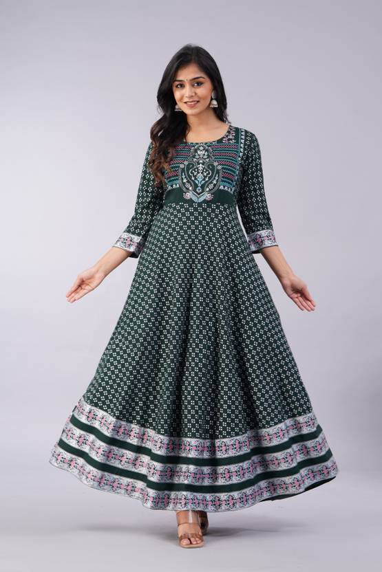 Printed Viscose Rayon Stitched Anarkali Gown (Green)