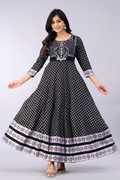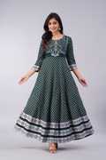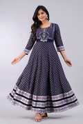 A Beautiful Proceen print Anarkali long kurti is a stylish and elegant traditional Indian outfit An Anarkali flared kurti is a long Kurti that is typically paired with Leggings churidars or Pants with matching Hills..
