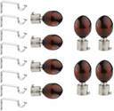 Welson Brown Rod Rail Bracket, Curtain Knobs, Curtain Hooks, Curtain Rods Metal (Pack of 16)