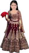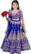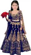 Wemation Girls Lehenga Choli Ethnic Wear Embroidered Lehenga, Choli and Dupatta Set (Blue, Pack of 1)