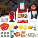 Pretend Play Smart Cash Register Toy, Kids Cashier with Checkout Scanner,Fruit Card Reader, Credit Card Machine, Play Money and Grocery Play Food Set, Educational Toys for Boys & Girls
