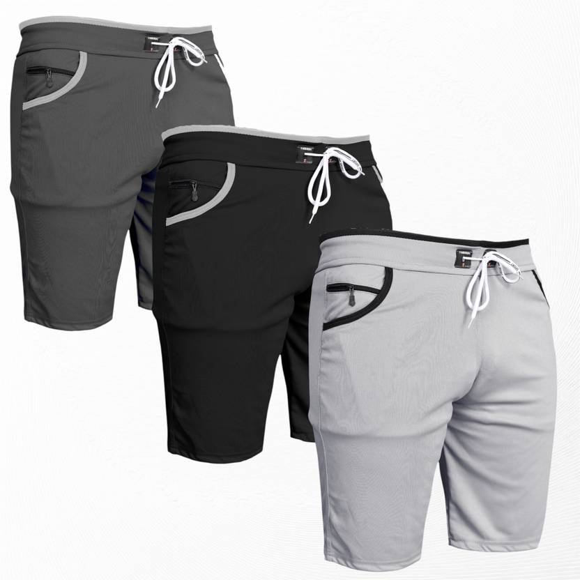 WeReKo Pack of 3 Solid Men Multicolor Casual Shorts, Regular Shorts, Gym Shorts