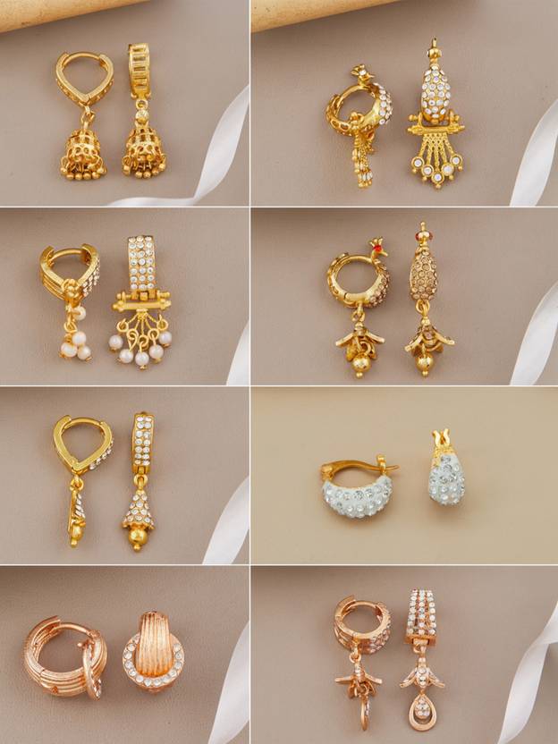Weroxa Combo Of 8 Diamond Brass Earring Set