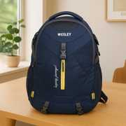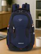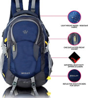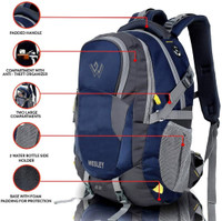 WESLEY Unisex Travel hiking laptop bag fits upto 17.3 inch with Raincover and internal organiser backpack Rucksack College bag 45 L Laptop Backpack (Grey, Blue)