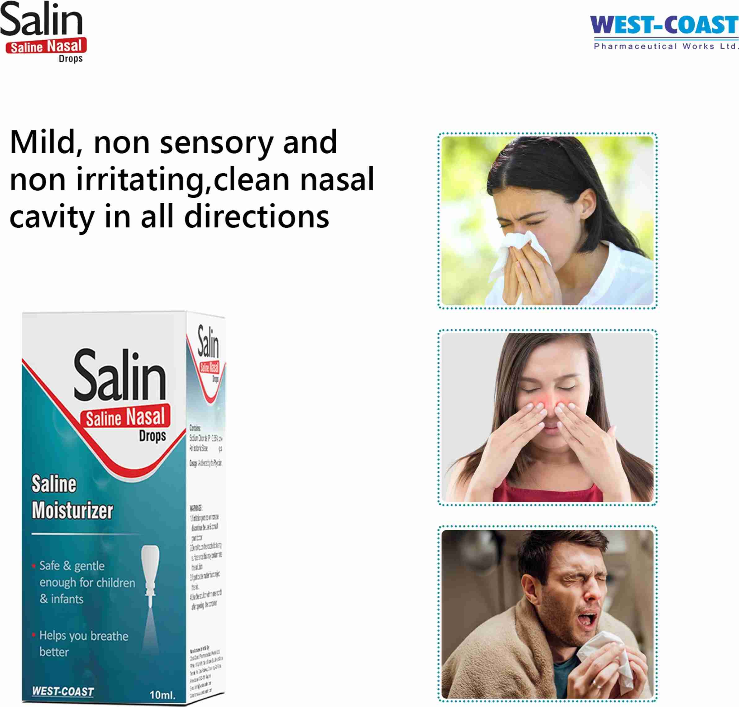 Salin Nasal Drops Stuffy Nose, Decrease Manual Nasal Aspirator (White)