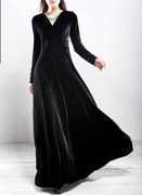 Elegant black velvet neckline dress maxi gown design for a stunning look., Features long sleeves for added warmth and style perfect for winter parties or formal events., Ideal for women and girls who appreciate timeless elegance crafted from velvet fabric for a sophisticated feel, Makes a statement with its long silhouette an excellent choice for special occasions and celebrations