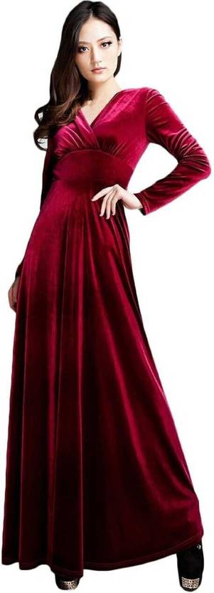 Womens Western Partywear Casual Velvet Dress