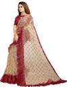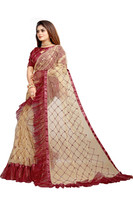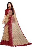 Western Gallary Self Design Bollywood Net Saree (Cream)
