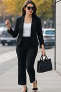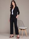 Black Co-Ord Set with Rolled Sleeve Blazer and Straight-Leg Trousers