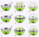 Method of Cooking the Way-With the Boiled Kitchen to Enjoy Delicious Nutritious Eggs Easily! Delicious food was easy to share. Just place the egg on the transparent round platform gently, or break them and shake for a little while, the tempting egg fragrance will welcome you. The boiled egg cooks prepare your family with fresh nutrients, bring a good day. The pursuit of fashion and health services is a unique lifestyle. convenient and nutritious, can make soft, medium or hard-boiled eggs in minutes, shelf Interior with capacity for eggs upright. good to eat: special design, rich elasticity, no fishy smell, maintain nutrition. no explosion: the only winery design to make the egg did not burst when heated Shell conveniently: easy to peel the eggshell, without stick. Safety: Auto-Power-Off once Running Dry Water Easy to clean: Stainless steel bottom design, quick heat dissipation, easy to clean. saves time and money: fast to cook, need no one to take care of, only needs 0.6 degrees of energy consumption to cook 0.05 degree eggs. Can cook eggs, comfortable and quick Automatically turned off when the water is dry Transparent lid you can see the status of food cleanly measuring cup with scale can cook eggs to your desired hardness Duarable and easy to wash Measuring water: add water according to grade cooked egg. Eggs preparation: drill a small hole in the eggs with the tip of the measuring cup to prevent eggs explosion. Boiling Point: On, red indicator lights. Will turn off automatically when the water dries.