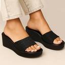 These wedge-style sandals boast a comfortable yet stylish design. The slip-on design ensures hassle-free wear, allowing you to effortlessly slide into them and be on your way. The adequate heel length not only offers a subtle lift but also provides the ideal balance between comfort and sophistication. The wide foot strap provides ample support to your fingers while lending these sandals a chic vibe.