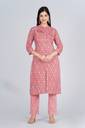 WGC Red Floral Printed Pintex And Button Plaket Worked Cotton V-Neck Women Kurta And Pant Set.