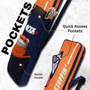 Protect your bat with this durable whackk Hayden cricket bat sleeve cover bag. Featuring multiple zippered compartments, it offers separate storage for your bat and accessories. It offers two zippered pockets for accessories and one compartment for bat. Constructed from durable, possibly water-resistant material, it includes a mesh bottle holder at the bottom. The design prioritizes protection and portability in a sleek package.