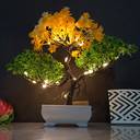 Asharya Artificial Bonsai Plant with LED Light| Pot for Office, Room Decor Bonsai Wild Artificial Plant with Pot (23 cm, Yellow, Green)