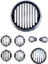 Enhance the rugged look and protection of your bike with this durable headlight grill set. Made from high-quality metal with a silver finish, it adds both style and safety. Easy to install and designed to fit most standard motorcycle headlights.