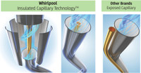 The capillary, which carries the refrigerant from the compressor to the freezer, is enveloped by a super cold gas. This has several benefits, such as better compressor efficiency, quick cooling and longer cooling retention (up to 12 hours).