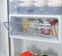 This refrigerator comes with a vegetable crisper featuring a Honeycomb Moisture Lock-in Technology to maintain the maximum moisture in the stored fruits and vegetables. As a result, they stay fresh for a long duration.