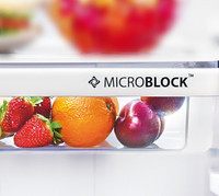 The vegetable crisper, fruit crisper, ice twister and collector contain a special antimicrobial additive to prevent bacterial contamination. This technology prevents the growth of bacteria or mould on your food by keeping it up to 99.9% bacteria-free.