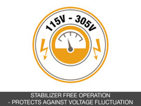 This refrigerator is equipped to deal with voltage fluctuations without requiring a stabilizer as its operating voltage ranges from 115-305 V.