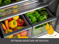The unique humidity control system of this refrigerator features twin crispers. This enables you to store food items that have different moisture content in separate sections, keeping them fresh for a long time.