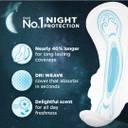 Whisper Bindazzz Nights ensures upto 0% leaks all night long. Whisper Bindazzz Nights pad is 60% longer and has a wider back so you are covered from leaks from all sides.