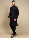 Premium Fabric: Crafted from a soft and breathable viscose blend, this black men’s kurta pajama set ensures all-day comfort, durability, and a polished look. Stylish Design: Features a mandarin collar, solid pattern, and knee-length cut that blends modern elegance with traditional Indian wear. Comfort & Utility: Designed with precision stitching for long-lasting wear and 2 functional side pockets each in kurta & pyjama with 1 chest pocket for convenience. Versatile Wear: Suitable for weddings, parties, festive occasions like Eid, Holi, Diwali, Raksha Bandhan, or even casual and office wear.