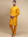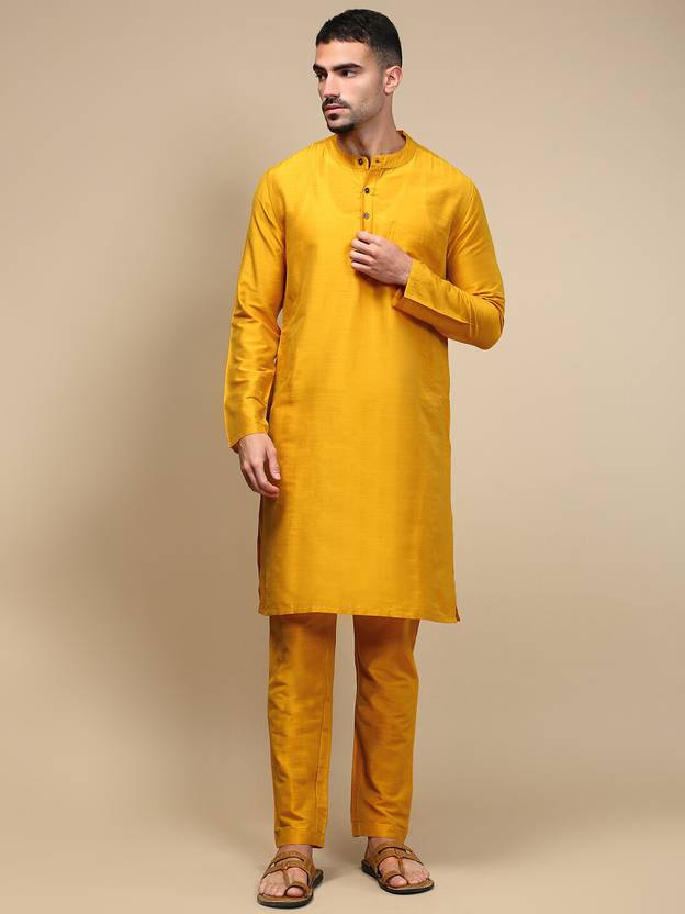 Premium Fabric: Crafted from a soft and breathable viscose blend, this yellow men’s kurta pajama set ensures all-day comfort, durability, and a polished look. Stylish Design: Features a mandarin collar, solid pattern, and knee-length cut that blends modern elegance with traditional Indian wear. Comfort & Utility: Designed with precision stitching for long-lasting wear and 2 functional side pockets each in kurta & pyjama with 1 chest pocket for convenience. Versatile Wear: Suitable for weddings, parties, festive occasions like Eid, Holi, Diwali, Raksha Bandhan, or even casual and office wear.