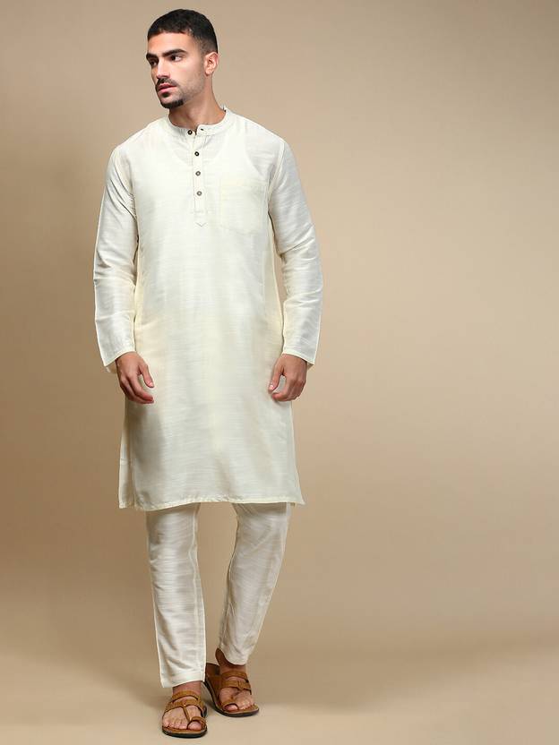Premium Fabric: Crafted from a soft and breathable viscose blend, this off white men’s kurta pajama set ensures all-day comfort, durability, and a polished look. Stylish Design: Features a mandarin collar, solid pattern, and knee-length cut that blends modern elegance with traditional Indian wear. Comfort & Utility: Designed with precision stitching for long-lasting wear and 2 functional side pockets each in kurta & pyjama with 1 chest pocket for convenience. Versatile Wear: Suitable for weddings, parties, festive occasions like Eid, Holi, Diwali, Raksha Bandhan, or even casual and office wear.