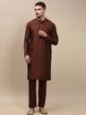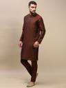 Premium Fabric: Crafted from a soft and breathable viscose blend, this brown men’s kurta pajama set ensures all-day comfort, durability, and a polished look. Stylish Design: Features a mandarin collar, solid pattern, and knee-length cut that blends modern elegance with traditional Indian wear. Comfort & Utility: Designed with precision stitching for long-lasting wear and 2 functional side pockets each in kurta & pyjama with 1 chest pocket for convenience. Versatile Wear: Suitable for weddings, parties, festive occasions like Eid, Holi, Diwali, Raksha Bandhan, or even casual and office wear.