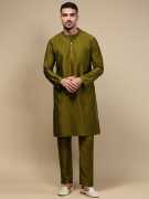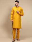Premium Fabric: Crafted from a soft and breathable viscose blend, this mustard men’s kurta pajama set ensures all-day comfort, durability, and a polished look. Stylish Design: Features a mandarin collar, solid pattern, and knee-length cut that blends modern elegance with traditional Indian wear. Comfort & Utility: Designed with precision stitching for long-lasting wear and 2 functional side pockets each in kurta & pyjama with 1 chest pocket for convenience. Versatile Wear: Suitable for weddings, parties, festive occasions like Eid, Holi, Diwali, Raksha Bandhan, or even casual and office wear.