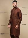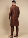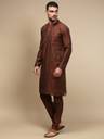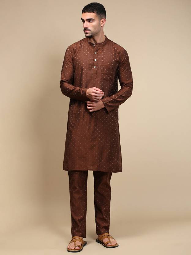 Premium Fabric: Crafted from a soft and breathable viscose blend, this brown men’s kurta pajama set ensures all-day comfort, durability, and a polished look. Stylish Design: Features a mandarin collar, ethnic motifs pattern, and knee-length cut that blends modern elegance with traditional Indian wear. Comfort & Utility: Designed with precision stitching for long-lasting wear and 2 functional side pockets each in kurta & pyjama with 1 chest pocket for convenience. Versatile Wear: Suitable for weddings, parties, festive occasions like Eid, Holi, Diwali, Raksha Bandhan, or even casual and office wear.