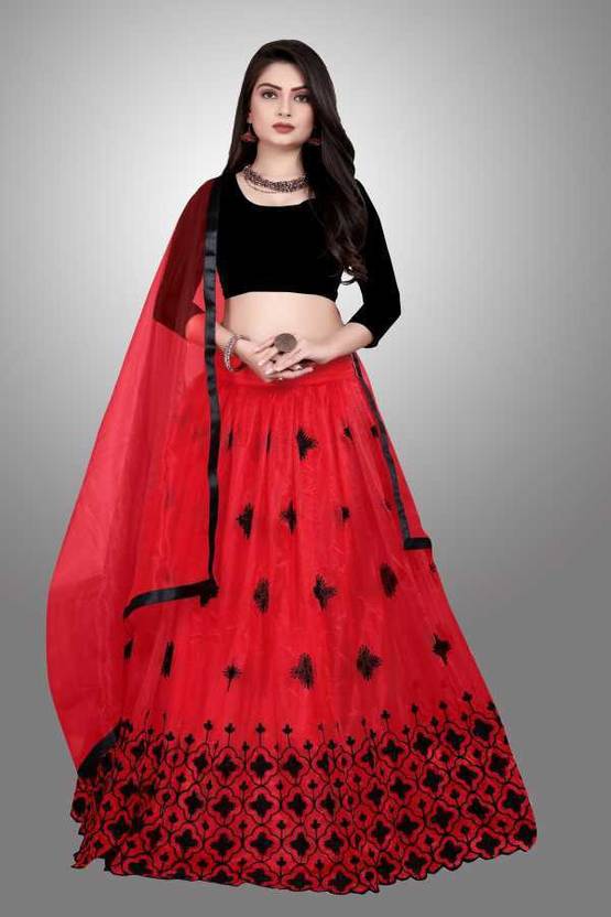 Embroidered Semi Stitched Lehenga Choli (Red)