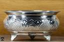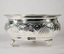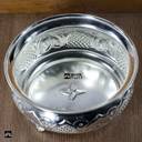 Made from Pure German Silver metal and Silver Coated yielding a finish like Original Pure Silver that lasts for years to come. Creating a wonderful serene atmosphere of your home with this Centre of Attraction Fruit Bowl for daily use and special occasions. Handcrafted with Intricate Embossing Work and with three pieces of sturdy stands fixed.The lustrous Shine further adds to its allure. A perfect Gift to make Gifting a memorable experience for loved ones.