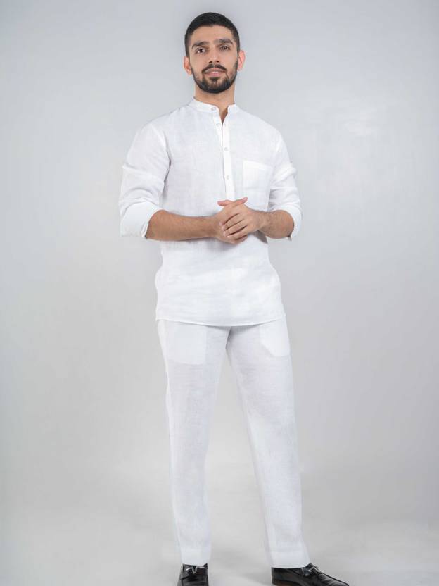 Enwhite collared front buttoned short Kurta with front pockets