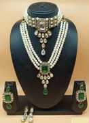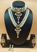 White pearl This Inspired Traditional Kundan Necklace Set For Women is made of Alloy. Women love jewellery; specially traditional jewellery adore a women. They wear it on different occasion. They have special importance on ring ceremony, wedding and festive time. They can also wear it on regular basics. Make your moment memorable with this range. This jewel set features a unique one of a kind traditional embellish with antic finish, Easy to use, HANDMADE
